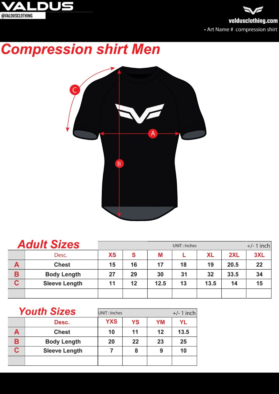 Sublimated compression shirt made to fit tight, sublimated wrestling shorts made to fit above the knee,